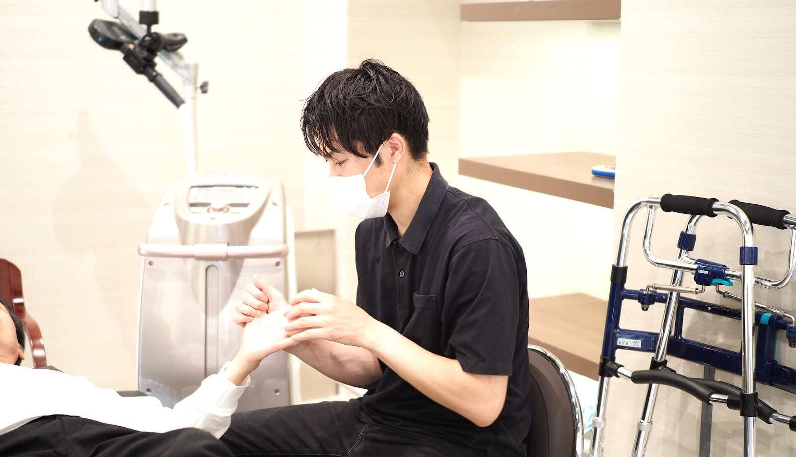 川平法の特長は、施術者が手を使って患者様の四肢を操作する一方で、患者様ご自身も自発的に動かす努力をしながら、1セットにつき約100回の運動を行います。この手技を複数組み合わせることで、神経回路の強化をしていきます。