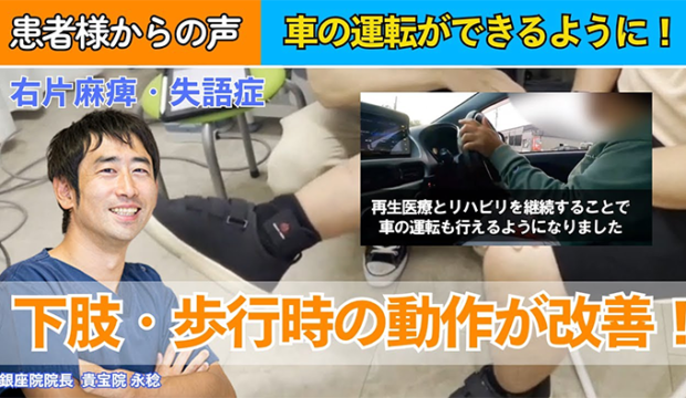 脳出血を発症後「同時リハビリ×神経再生医療™」の治療を受けられた方の再生医療体験談です。
